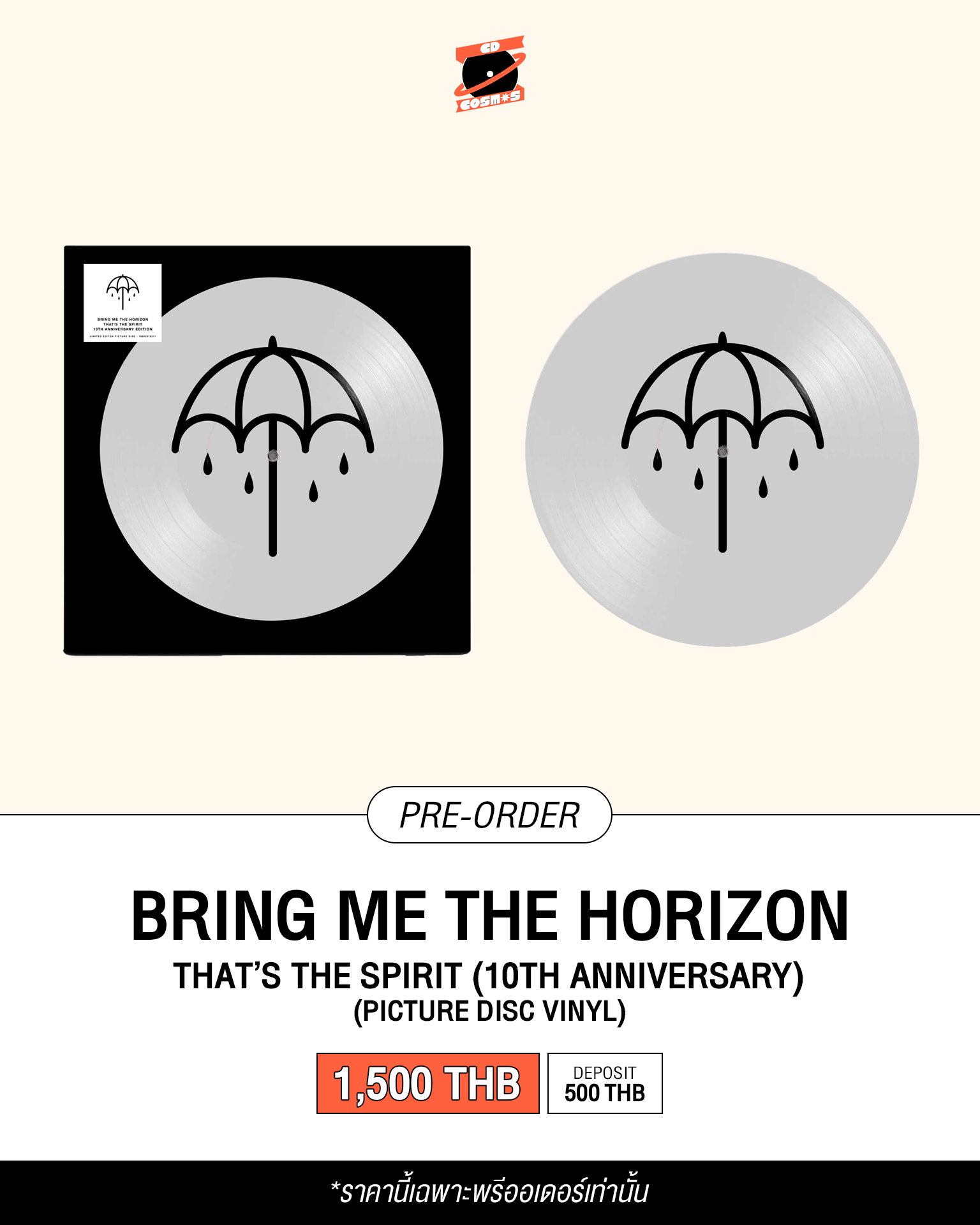 Limited edition picture disc re-issue of Bring Me The Horizon’s groundbreaking fifth studio record, That’s The Spirit. Featuring some of the band’s most successful singles such as Throne, Drown and Follow You, it is an album that saw the band transcend from UK-alternative mainstays to global superstars. This limited run picture disc is pressed on recycled black vinyl and housed in a die cut cover sleeve which showcases an inverted colorway of the album’s original design and synonymous umbrella logo.